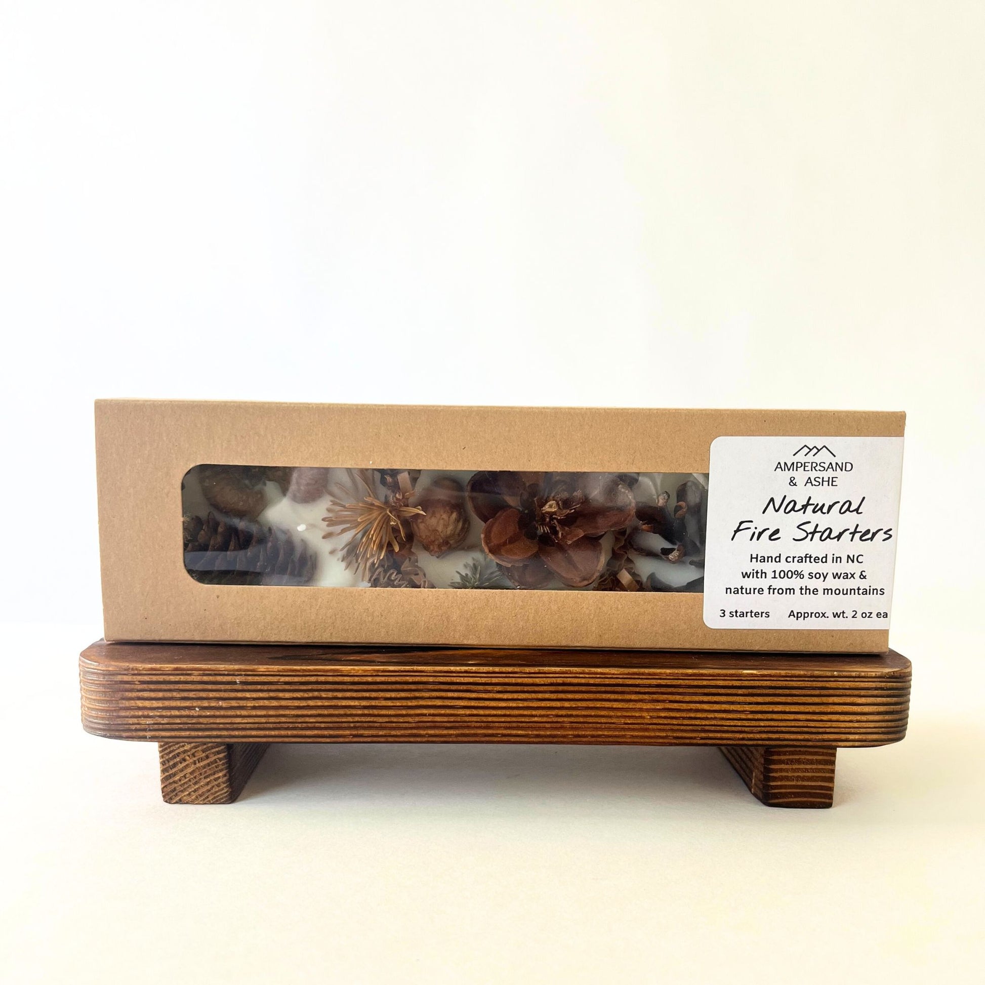 These natural fire starters are made with 100% soy wax and nature gathered from the mountains of North Carolina and New York. Pinecones and acorns are soaked in a solution of water and vinegar then oven dried to ensure no uninvited guests are included with purchase.